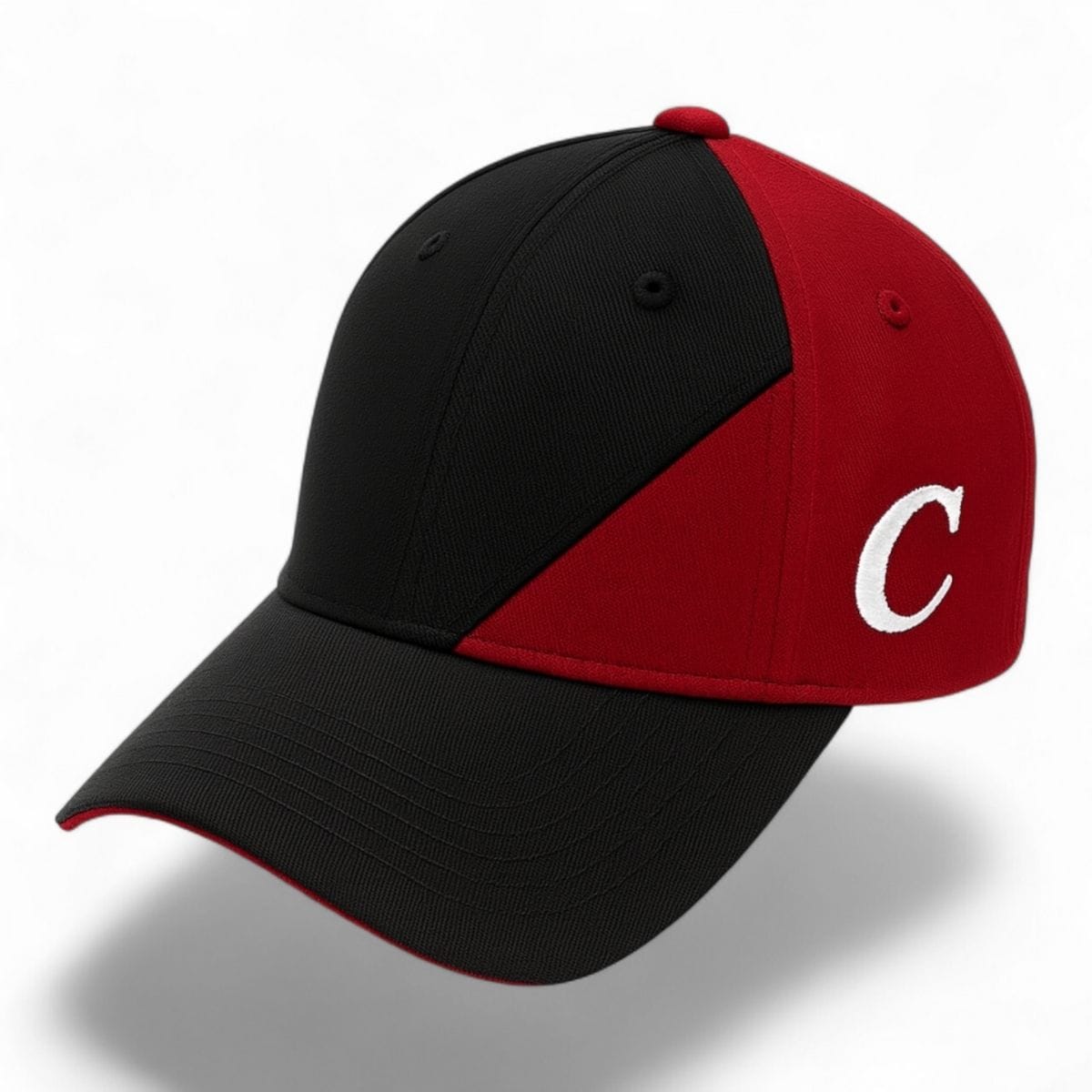 The Cappi Slice Cap stands out with its dual-tone contrast design. The sharp combination of black and red creates a bold fashion statement. The side panel features an embroidered “C” logo, highlighting brand identity and giving the cap a premium finish that sets it apart from ordinary caps.