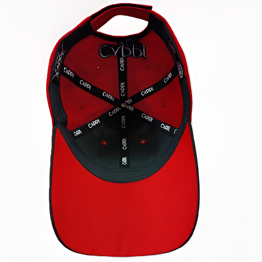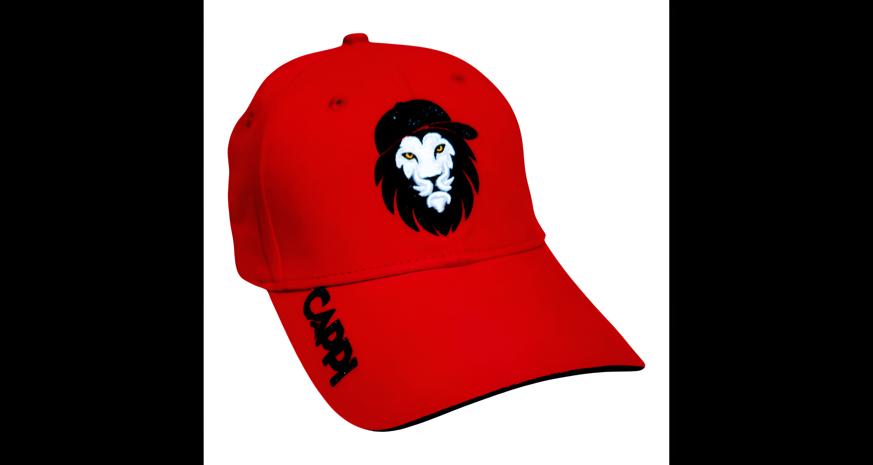 Red Baseball Cap by Cappi – premium cotton twill, bold lion embroidery, adjustable fit, and lightweight unisex design. Perfect for sports, travel, and everyday style.